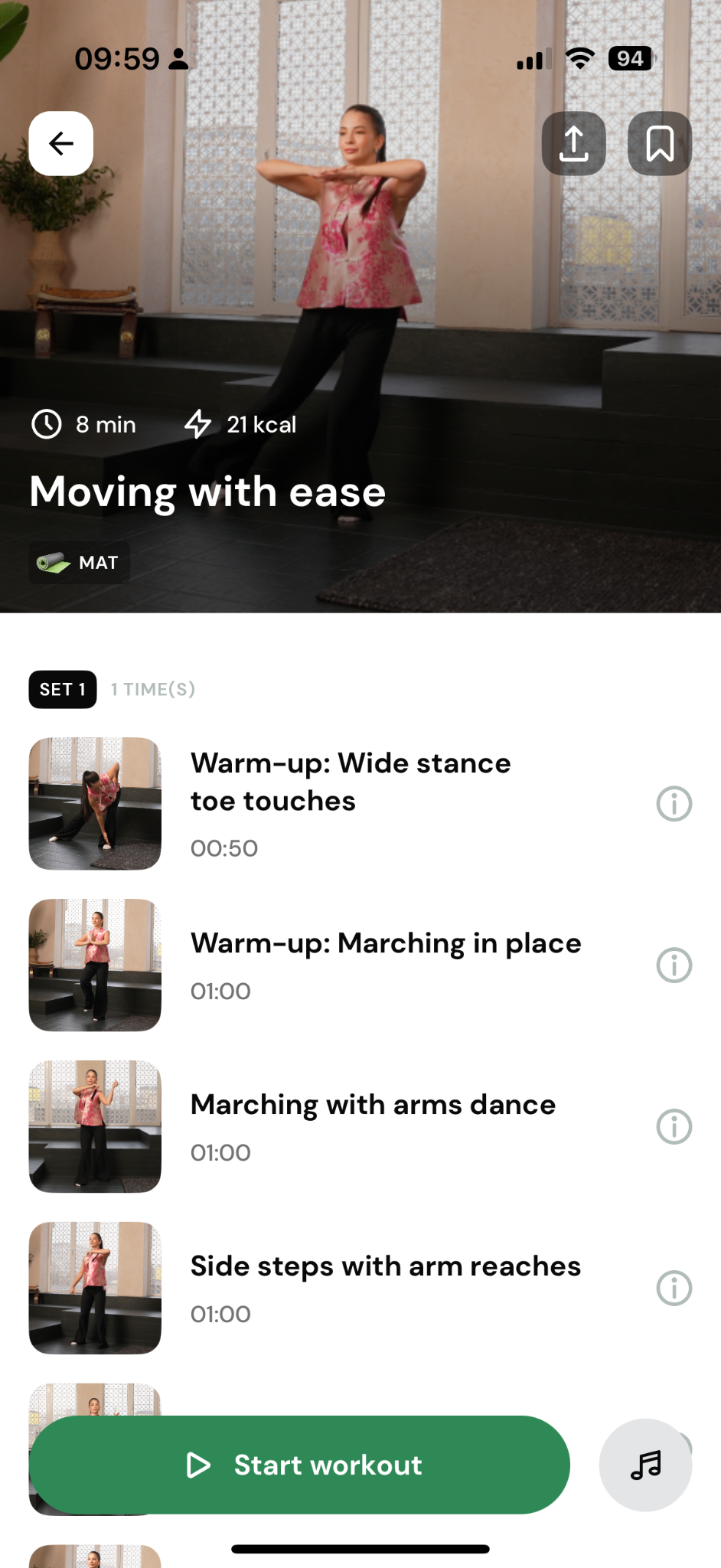 The Lasta app offers a unique, continuous, low-impact movement flow based on the principle of natural calming rather than exhausting workouts. It incorporates the elements of cozy cardio, slow functional fitness, and Tai Chi walking. It helps you lose weight, improve mobility, and develop consistent movement habits.